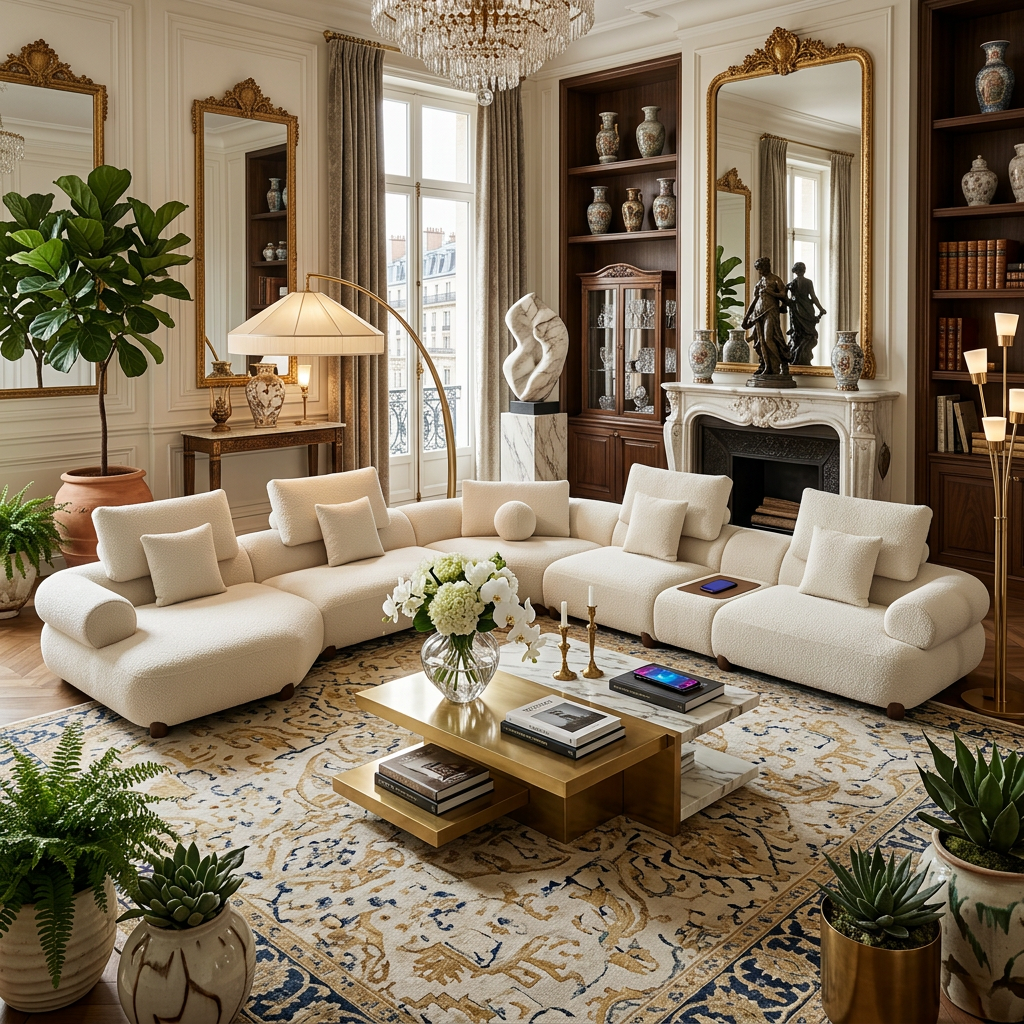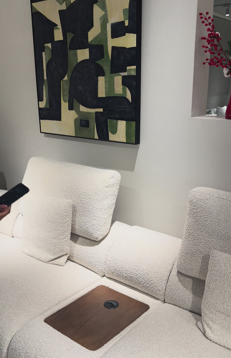 Parce qu’il fait ce que les beaux canapés font rarement : il impose un style et il résout des détails. Le bouclé capte la lumière. Il adoucit une pièce contemporaine, il rend un salon instantanément plus chic.